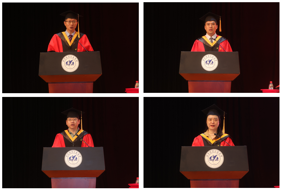 Undergraduate, master's, doctoral, and part-time graduate representatives shared their experiences. Faculty member Han Xiao and alumni representative Wu Xuexiu offered insights and blessings.