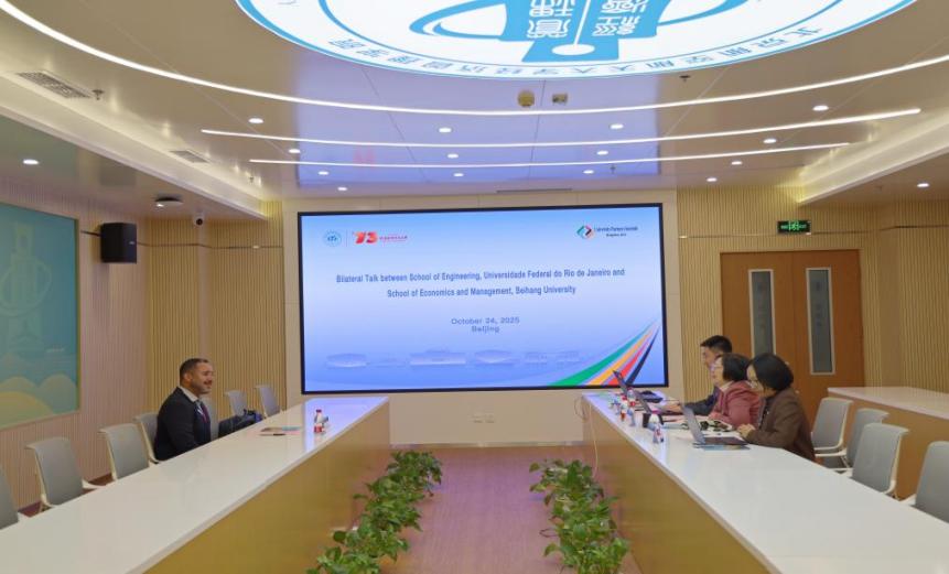 During the summit, the delegation participated in the opening ceremony of "Beihang-Polytechnic University of Madrid Day" — a special event for Beihang's key partners — and had in-depth communication with the leaders of Polytechnic University of Madrid (UPM) on bilateral cooperation. In addition, SEM held bilateral talks with the Real Madrid Graduate School of European University of Madrid (UEM), the School of Computer Science of Polytechnic University of Madrid (UPM), and the Polytechnic School of Federal University of Rio de Janeiro in Shanghai and Beijing respectively.