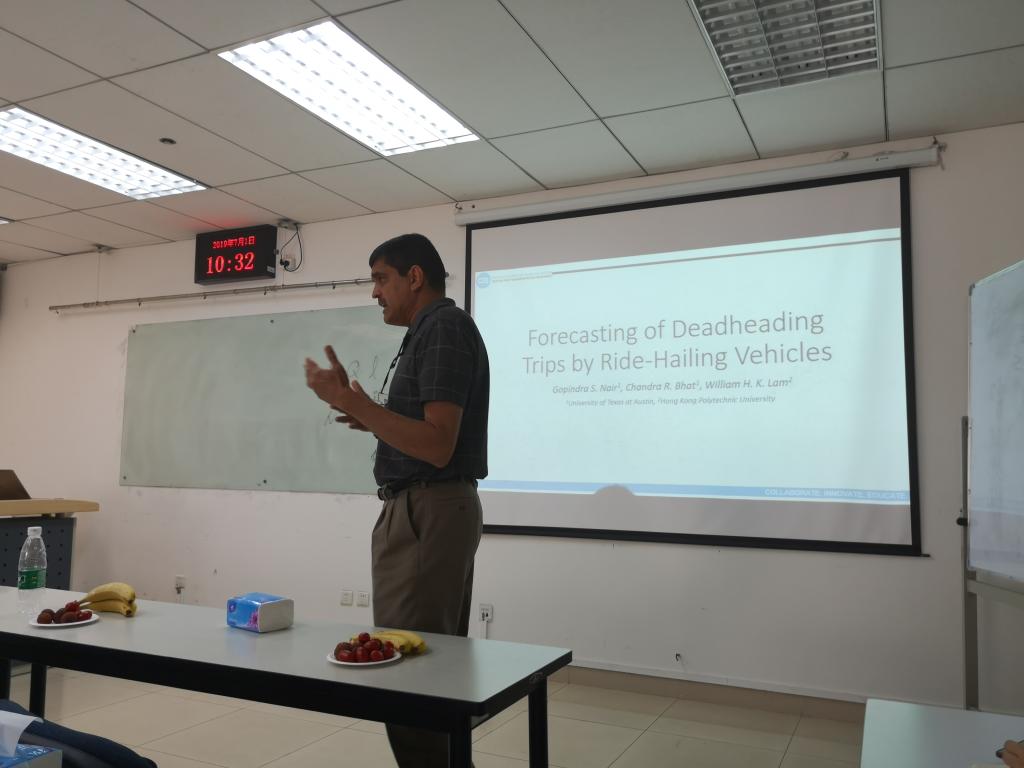 On July 1st, from 10:30 to 12:00, Professor Chandra Bhat of the University of Texas at Austin was invited to visit our school and gave a report entitled "Forecasting of Deadheading Trips by Ride-Hailing Vehicles" in the New Main Building A949. Professor Haijun Huang, Professor Qiong Tian, Professor Tieqiao Tang, Professor Renyong Guo, Associate Professor Tianliang Liu, Dr.Chenlan Wang, and more than 100 students from the School of Economics and Management, School of Transportation, and Reliability College participated in this academic report.