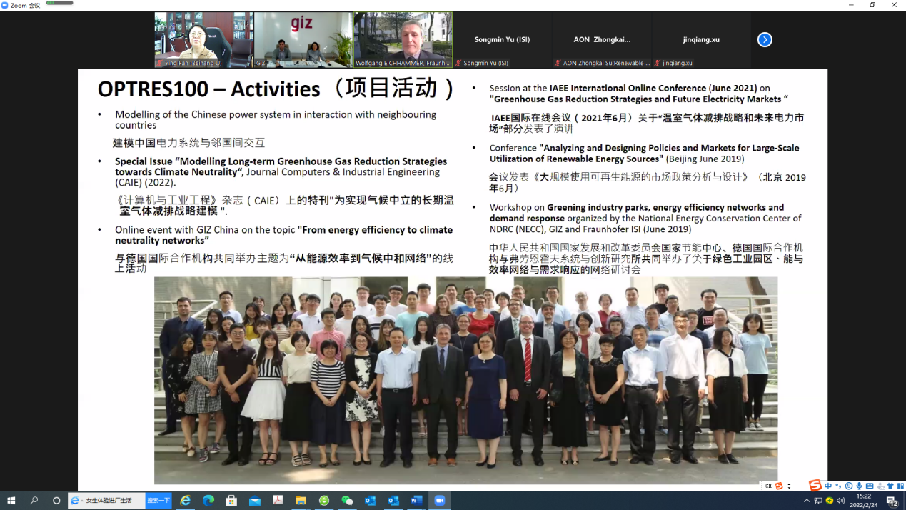 On February 24th, the Sino-German intergovernmental cooperation project hosted by the team of Prof. Ying Fan ofSEMheld an online academic seminar with the theme of "From energy efficiency to climate neutrality networks: Implemented best practices and concepts for demand flexibility and climate neutrality in industrial companies". More than 100 scholars from Beihang University, German Fraunhofer Institute for Systems and Innovation Research (Fraunhofer ISI), German Corporation for International Cooperation (GIZ), State Grid Energy Research Institute, Chinese Academy of Sciences, German Institute for Resource Efficiency and Energy Strategies (IREES) attended the meeting.